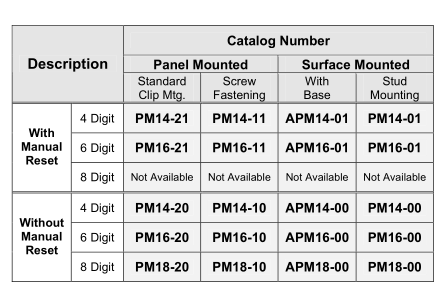 目錄號??梢蕴砑邮謩訌?fù)位防護(hù)罩,以防止意外重置計數(shù)器。將后綴“V”添加到目錄號。對于鏟匙鍵,將后綴“VS”添加到目錄號。對于秘密復(fù)位,添加一個“S”后綴。標(biāo)準(zhǔn)設(shè)計有10-32端口,如果為1/8端口則指定適配器需要。