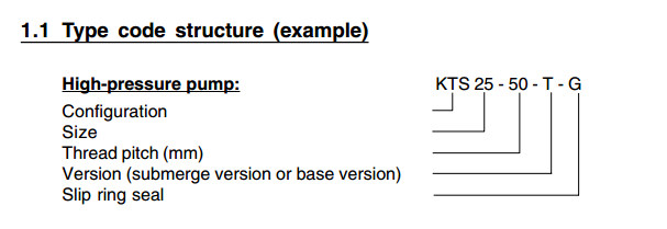 KNOLL KTS系列螺桿泵選型代碼: