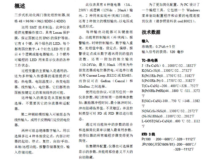 意大利GEFRAN杰佛倫-1800PV閥門控制器。意大利GEFRAN1800PV閥門控制器有2中面板尺寸可選,分別為(48x48mm/96X96mm)面板可組態(tài)輸入/輸出。儀表面板保護等級可達IP65,有效防止的意外損壞。GEFRAN1800V閥門控制器主要應(yīng)用于擠出機、注塑機、包裝機械、食品加工設(shè)備等。GEFRAN1800V可面板組態(tài)輸入/輸出方便快捷,繼電器、邏輯、加熱/制冷、PID控制輸出,自帶密碼保護功能,可防止意外組成錯誤引起麻煩,另外GEFRAN1800V閥門控制器自帶閥門位置反饋功能,方便隨時監(jiān)控閥門當(dāng)前位置。