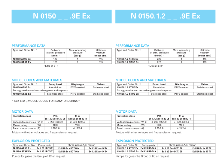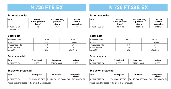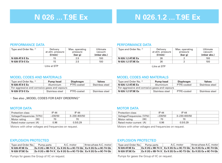 KNF防爆泵的幾類型號及其規(guī)格參數(shù)如下:
