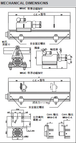 GEFRAN-MK4C磁滯伸縮位移傳感器。意大利GEFRAN MK4C非接觸磁滯式設計采用了GEFRAN公司最新的ONDA專利技術,使得我們的產(chǎn)品尺寸更加緊湊。GEFRAN MK4C量程從50mm~1500mm可選,防護等級可達IP65。四種游標指針可選。
