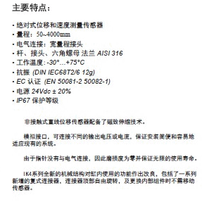 GEFRAN IK4A非接觸磁滯伸縮位移傳感器輸出為標(biāo)準(zhǔn)模擬量輸出,電壓0~10v、電流4-20mA可選,極大方便了數(shù)據(jù)的采集處理。