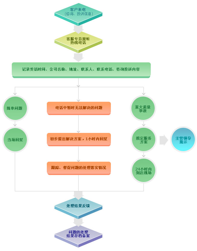 (4)每次供貨后,我們將及時(shí)尋訪用戶。調(diào)查、了解用戶對我們工作看法和意見,及時(shí)發(fā)現(xiàn)并解決問題,不斷改進(jìn),提高我們的產(chǎn)品和服務(wù)質(zhì)量。