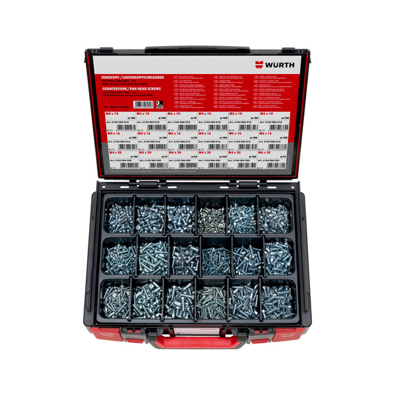 描述:1100 pieces in system case 4.4.1. Zinc-plated steel, strength class 4.8, blue passivated (A2K), with cross drive H