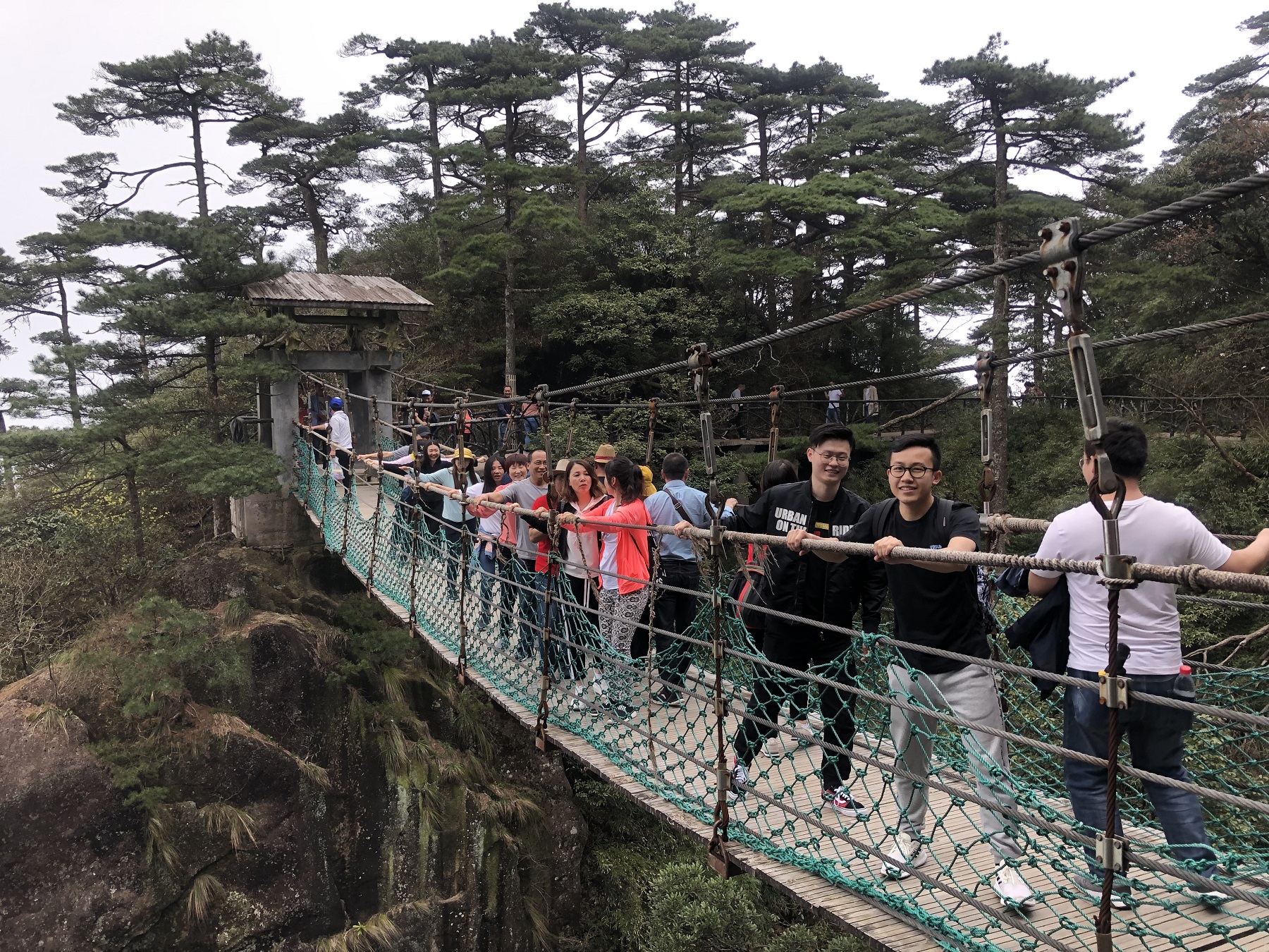 4月20日起了個早,出發(fā)前往本次旅行的主要景點——三清山,海拔達1800多米,乘坐纜車抵達800米左右的高度后,自己爬山至1500多米,纜車上去后繞著三清山景區(qū)一部分轉(zhuǎn)一圈就用了四五個小時,據(jù)說棧道有30里,部隊的人耗時11年修建的,此時不得不感概人類的智慧和潛能。山上可以欣賞到各種奇形怪狀的巨石,在爬山過程中也不會覺得枯燥,整個公司的人步調(diào)都很一致,一天下來雖然有點累,不過很值得!