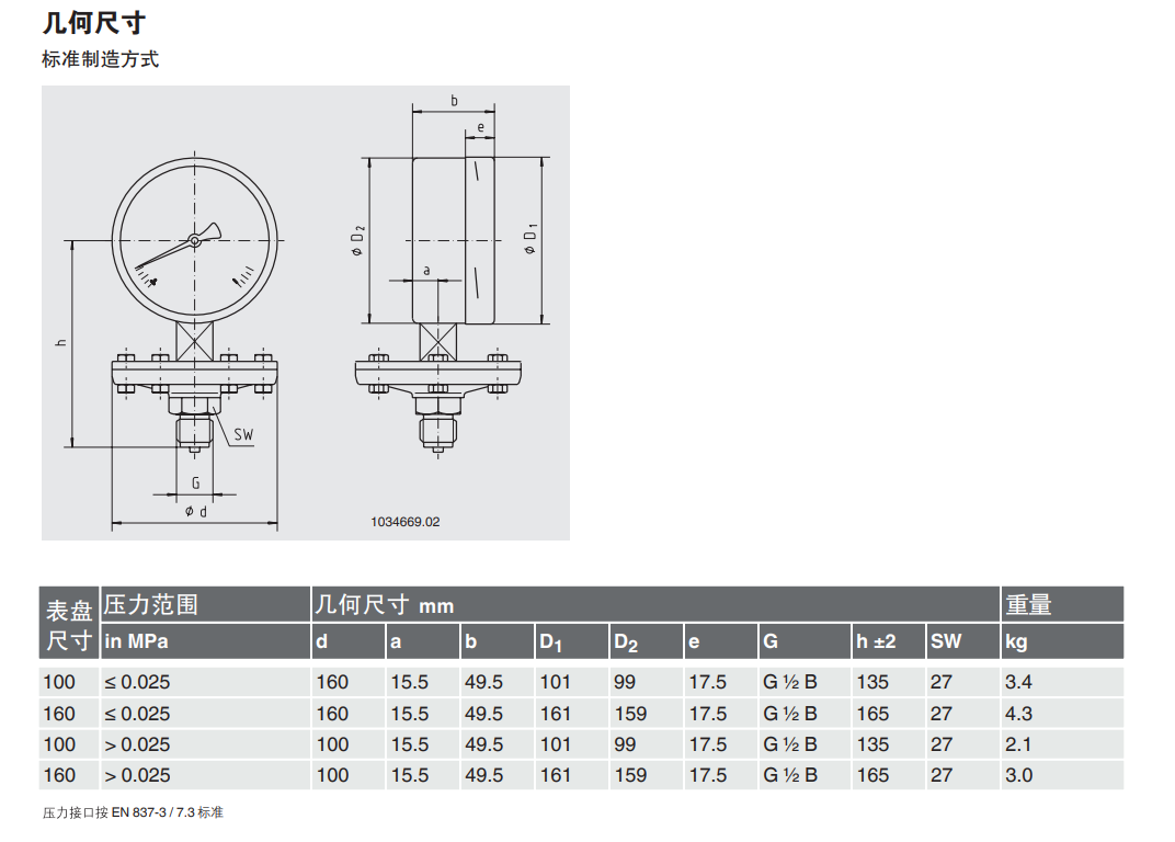 膜片式壓力表的生產(chǎn)符合EN 837-3標(biāo)準(zhǔn)。堅(jiān)固型外殼設(shè)計(jì)適用于機(jī)械制造、設(shè)備建造和水處理行業(yè)。