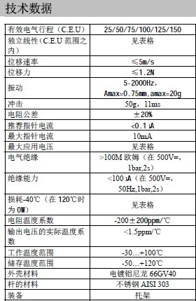 GEFRAN杰弗倫PA1滑塊式直線位移傳感器,采用內(nèi)置拉桿式設(shè)計(jì)。量程50~150mm、獨(dú)立線性度±0.5%、防護(hù)等級(jí)IP65、位于速度>5m/S、最大供電電壓60vdc、重復(fù)性0.01mm、本質(zhì)無線分辨率。GEFRAN PA1直線位移傳感器使用環(huán)境溫度-30~100°C、殼體材料使用不銹鋼材質(zhì)、電阻公差±20%。GEFRAN PA1直線位移傳感器內(nèi)部碳膜電阻涂層,配合電刷滑動(dòng)實(shí)現(xiàn)電阻變化,從而轉(zhuǎn)換為位移量。