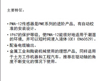 GEFRAN-PMA12磁阻式直線位移傳感器。采用磁阻式設(shè)計原理,本事無限次使用壽命,靈敏度0.1mm,重復(fù)性僅為0.08mm。意大利GEFRAN PMA12磁阻式直線位移傳感器,防護(hù)等級高達(dá)IP67,適用于惡略潮濕、高粉塵、室外的等環(huán)境使用理想選擇。意大利GEFRAN PMA12磁阻式直線位移傳感器采用拉桿式設(shè)計,配以魚眼軸承及磁環(huán)附件。GEFRAN PMA12拉桿式位移傳感器獨(dú)立線性度為±0.5%FS,量程從50~1000mm可選。位移速度小于5m/s、殼體材料使用不銹鋼材質(zhì)、最大供電電壓可達(dá)60VDC、電阻公差±20%。