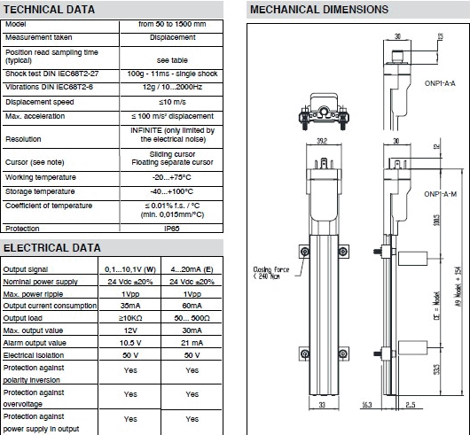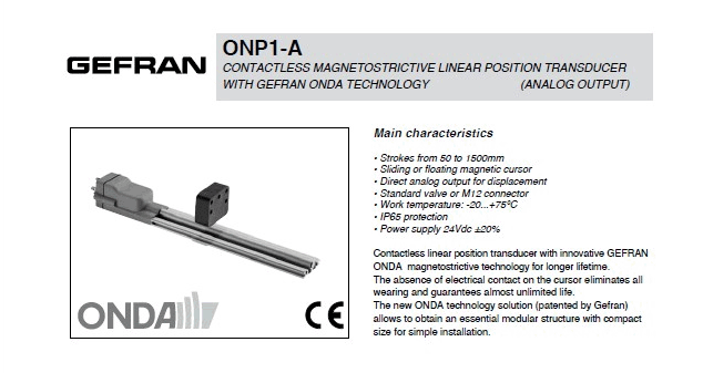 GEFRAN杰弗倫ONP1-A 非接觸磁磁滯伸縮位移傳感器