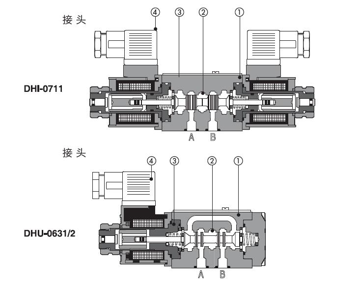 DHI/DHU電磁方向控制閥是三通或者四通,兩位或三位的電磁鐵直接操作型電磁滑閥,適合于液壓系統(tǒng)的控制。