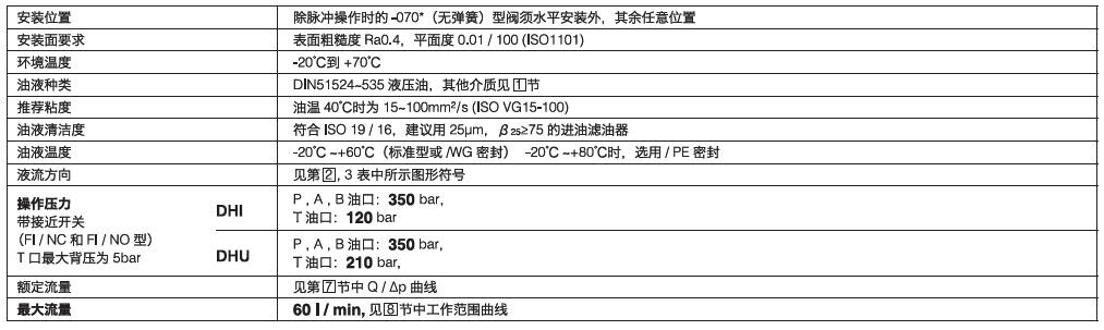 DHI/DHU電磁方向控制閥特性參數(shù):